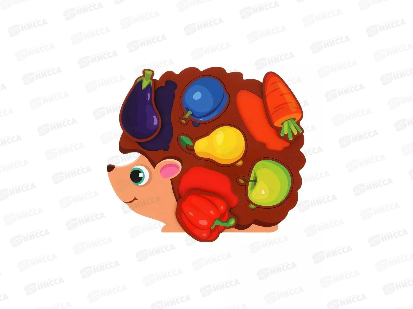 Вкладыши "Ежик собирает урожай" овощи и фрукты, 6 деталей 962086