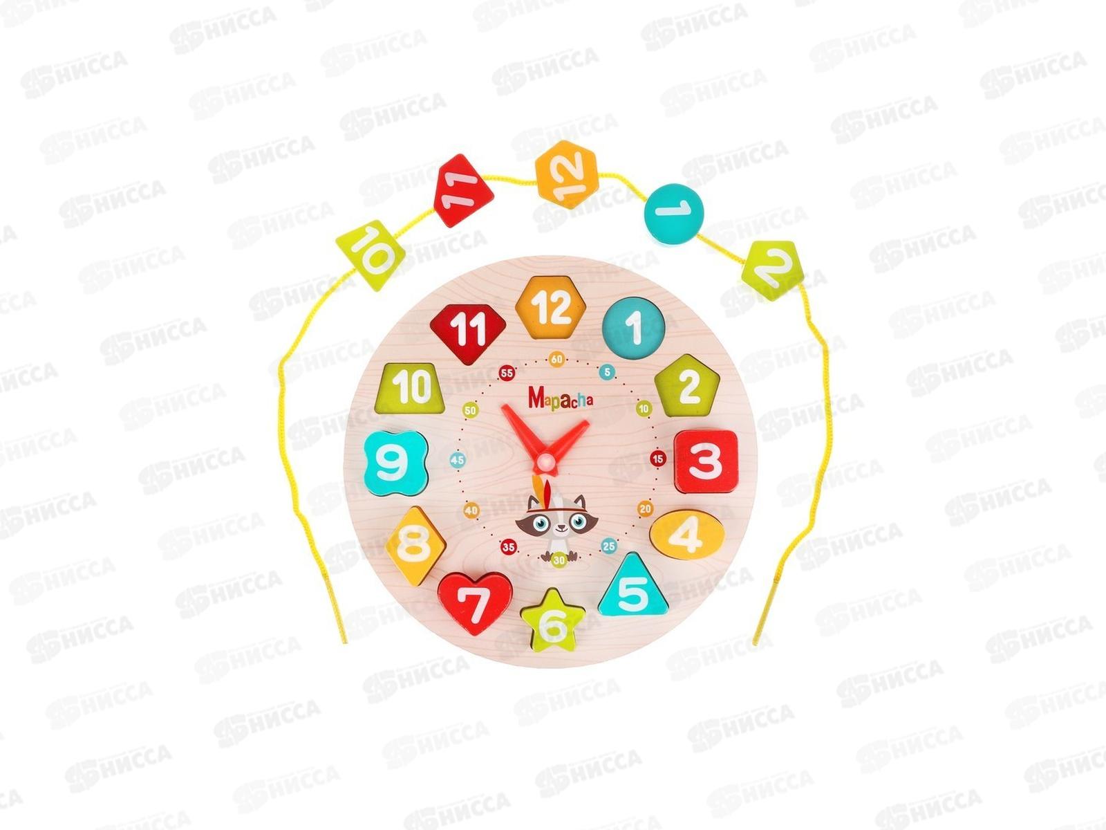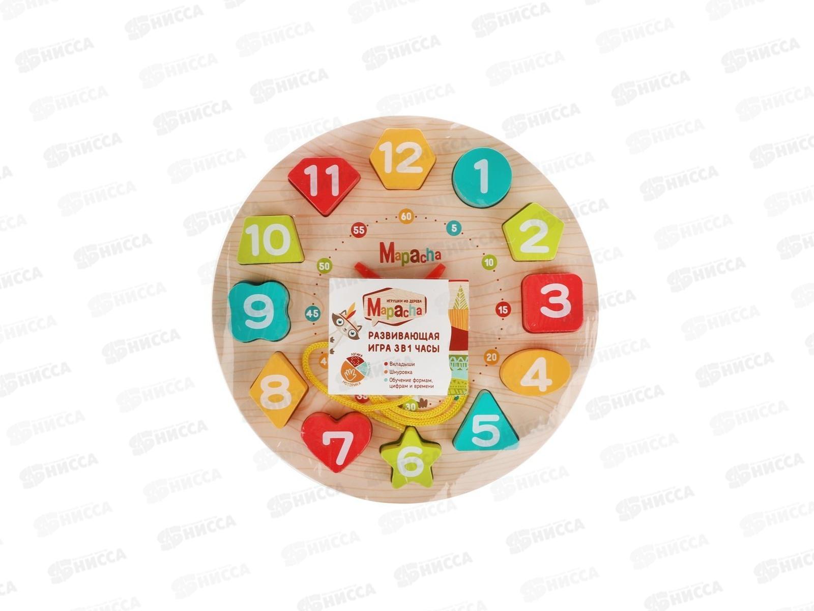 Развивающая игра 3в1 "Часы": вкладыш, шнуровка, обучение формам и цифрам, 76847