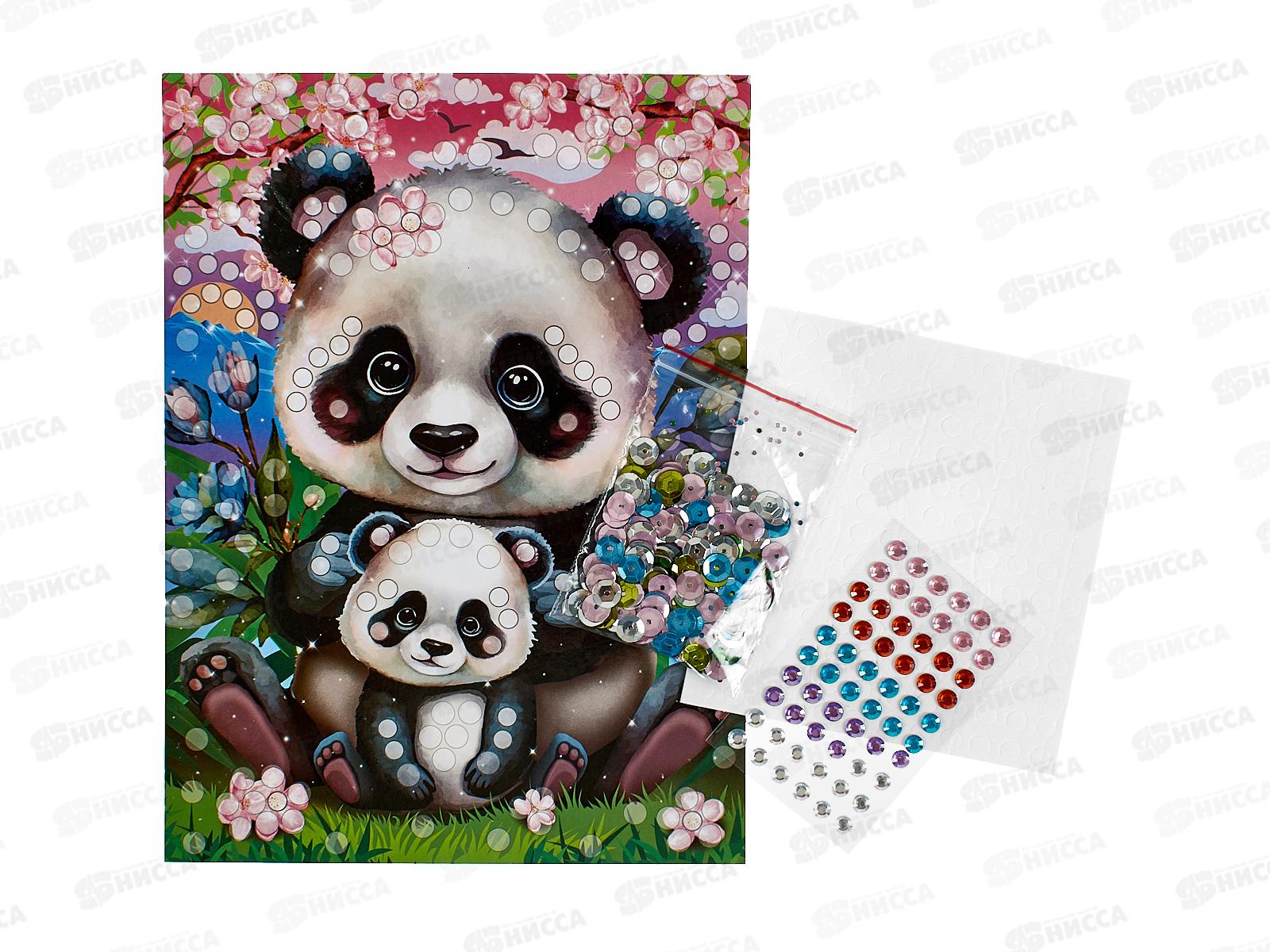 Аппликация из пайеток и страз Панды (17х23см), GEMSEQ-111514