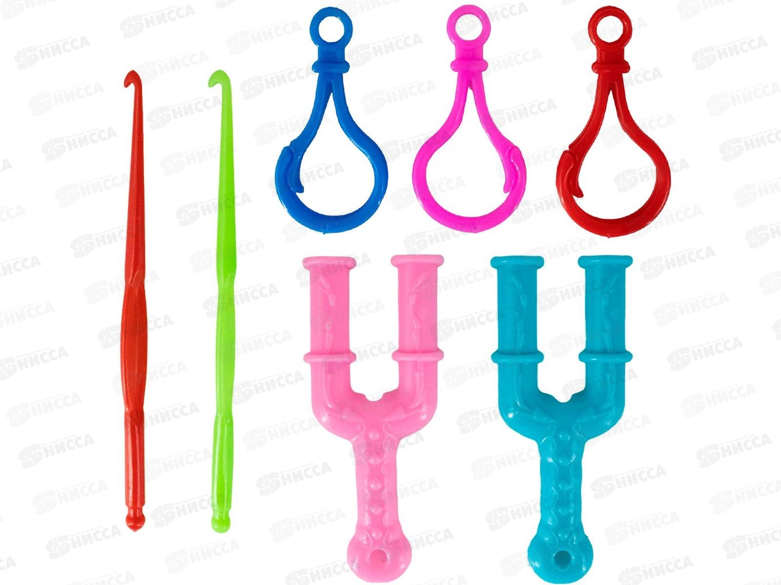 Комплектация: резинки, бусины, 2 рогатки, 2 крючка, 3 карабина