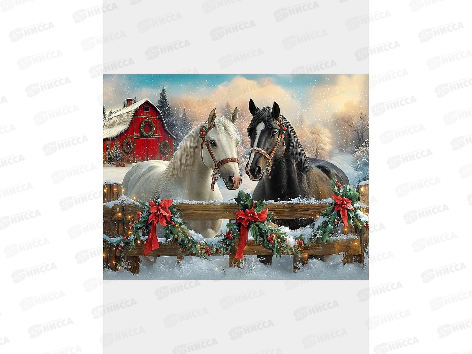 Холст с красками 17х22см Пара лошадей в загоне, ХК-0472