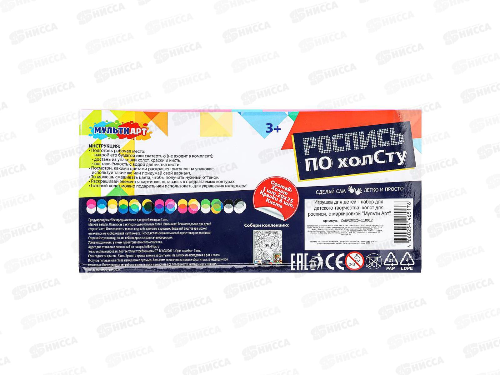 Комплектация: 6 красок, кисть, холст