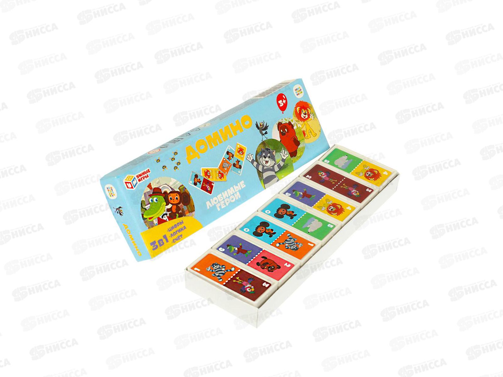 Пластиковое домино Союзмультфильм. Любимые герои ТМ Умные игры - интересная развивающая игра для детей: 3 в 1: цифры, логика, счёт, 28 фишек с изображением персонажей любимых м/ф