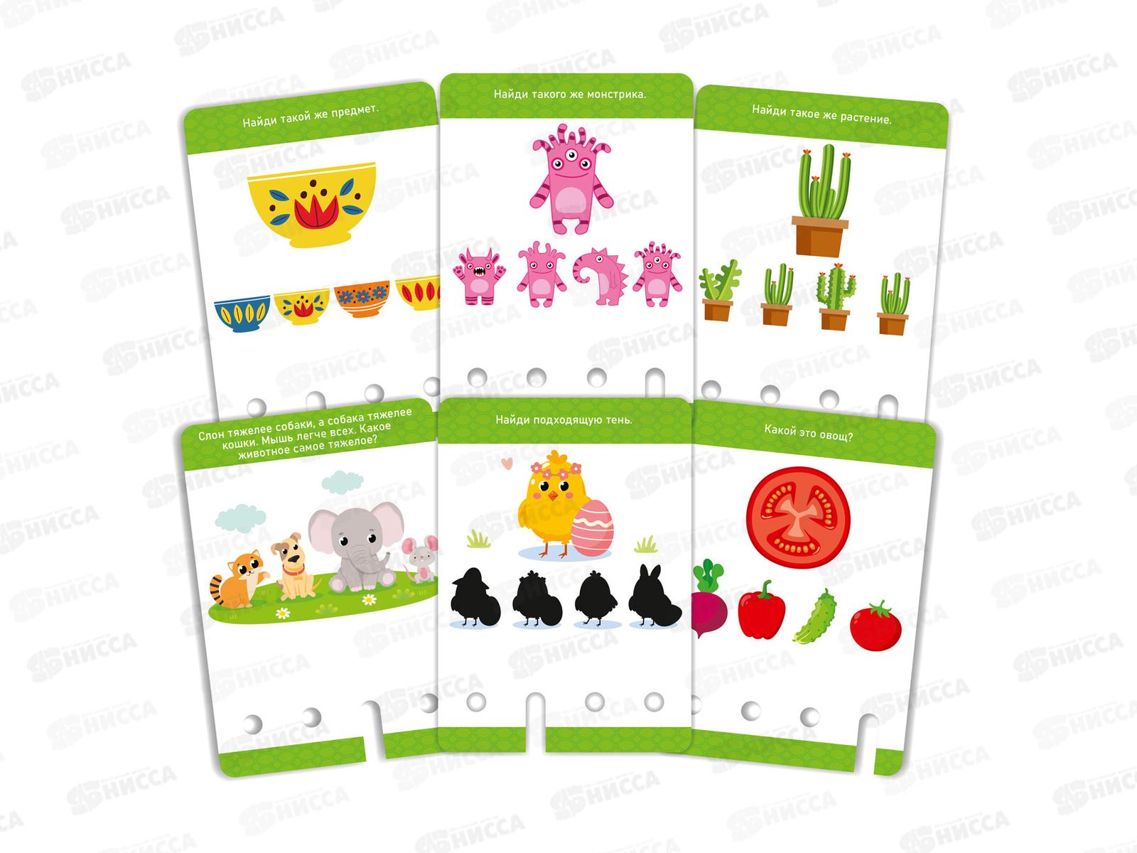 Состав: двухсторонние карточки (10х14 см) - 36 шт, подставка (4,5 х 14 см) - 1 шт, ключик (5,5 см) - 1 шт, шнурок для ключа (38 см) - 1 шт.