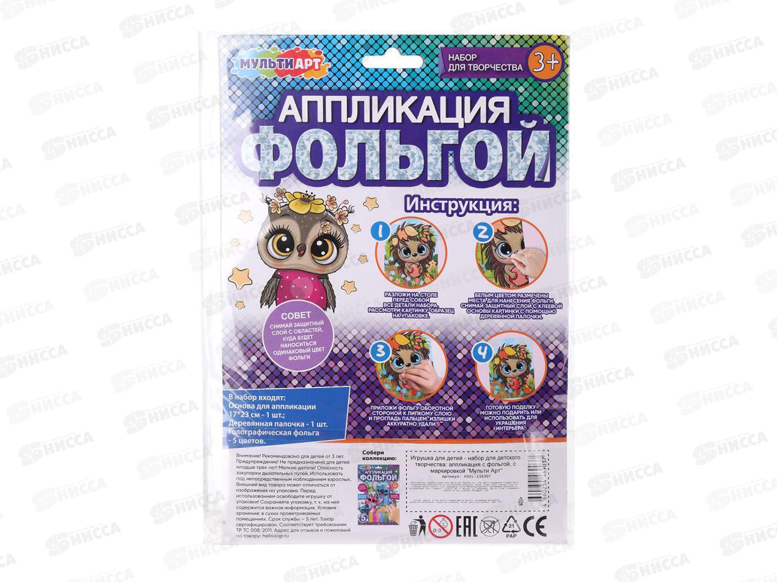 Аппликация из фольги 17*23см Ежик, FOIL-116307 Мульти Арт