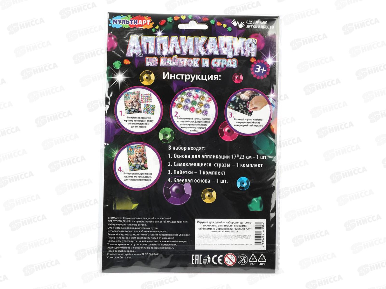 Аппликация из пайеток и страз Котята в корзине (17х23см) GEMSEQ-122310