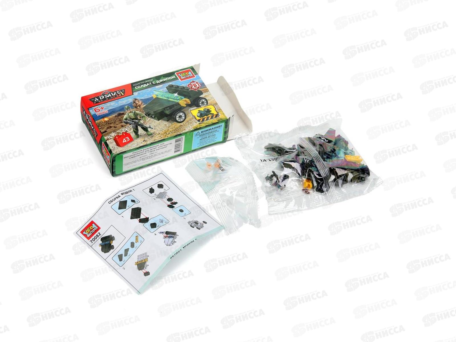 Конструктор "ГОРОД МАСТ" Солдат с джипом 2в1 43дет., 70082-XJ