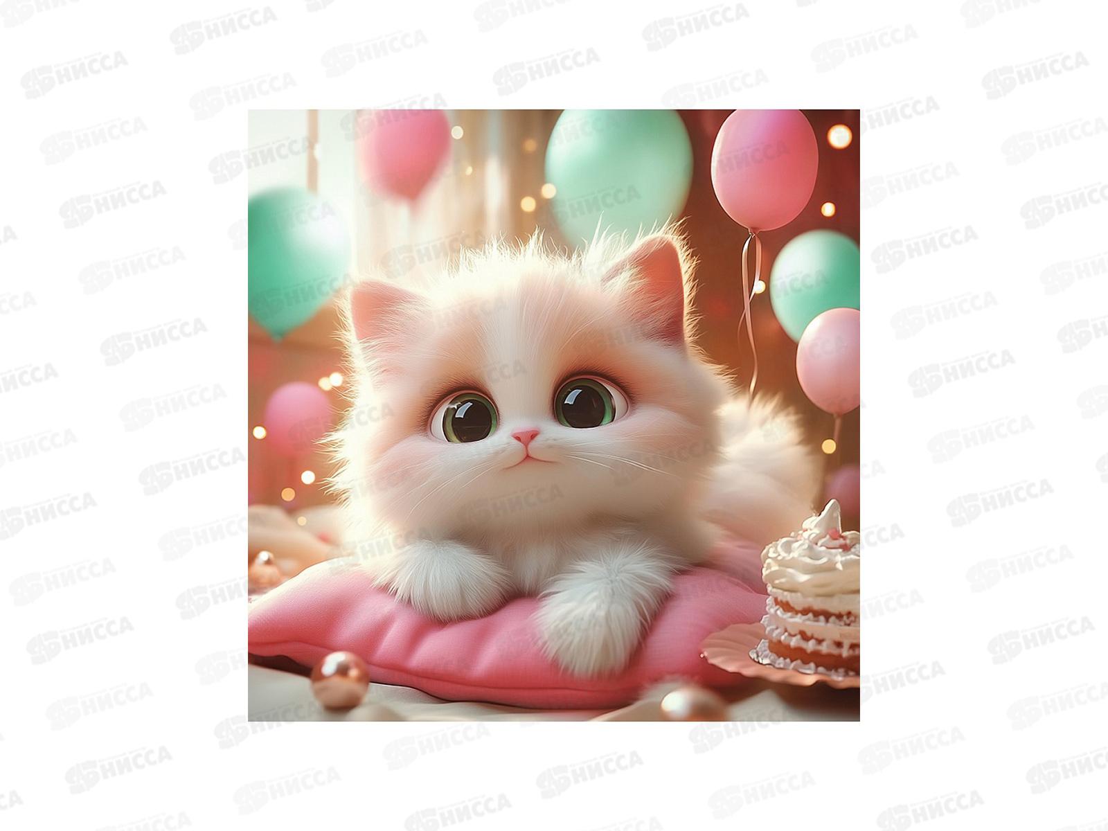 Алмаз. мозаика (класс.) 20х20см Праздничный котик, НД-1880 с подр.