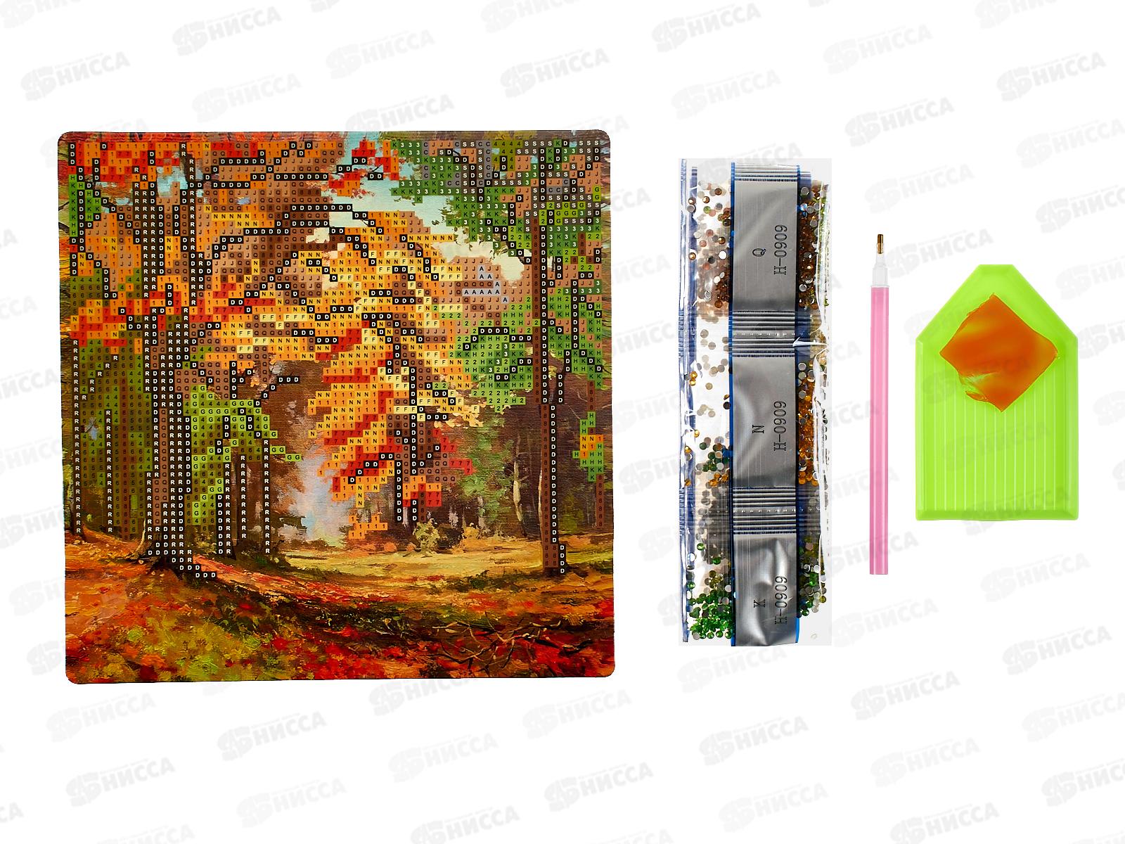 Алмаз. мозаика (блест.) 20х20см Осенний лес, НД-0909 на картоне