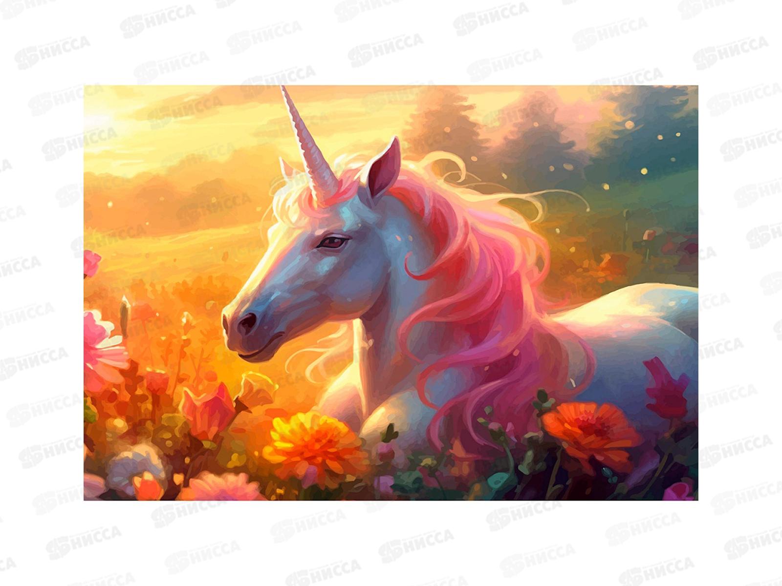 Алмаз. мозаика (класс.) 17х22см Единорог в поле, НД-0748 с подр.