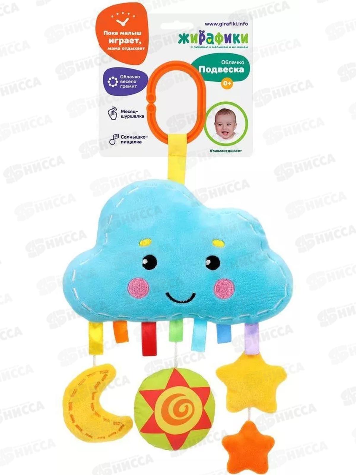 Функциональная подвеска «Облачко» быстро завоюет внимание малыша и будет отвлекать его от капризов! Игрушку можно закрепить на бортике детской кроватки, коляске или автокресле при помощи специального пластикового колечка. Подвеска сделана из красочных разноцветных текстильных материалов разной фактуры. Гладкие и ворсистые ткани использованы при создании элементов изделия для развития тактильных ощущений малыша: игрушку так приятно трогать ручками! К милому облачку прикреплены развивающие игрушки: месяц-шуршалка, солнышко-пищалка и 2 звёздочки. А ещё подвеска очень весело гремит при каждом встряхивании!