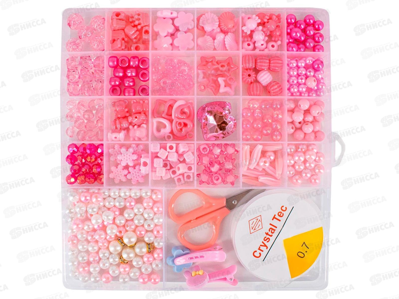 Комплектация: бусины разных форм и цветов (25 видов), мини-ножницы, моток лески (0,7 м),