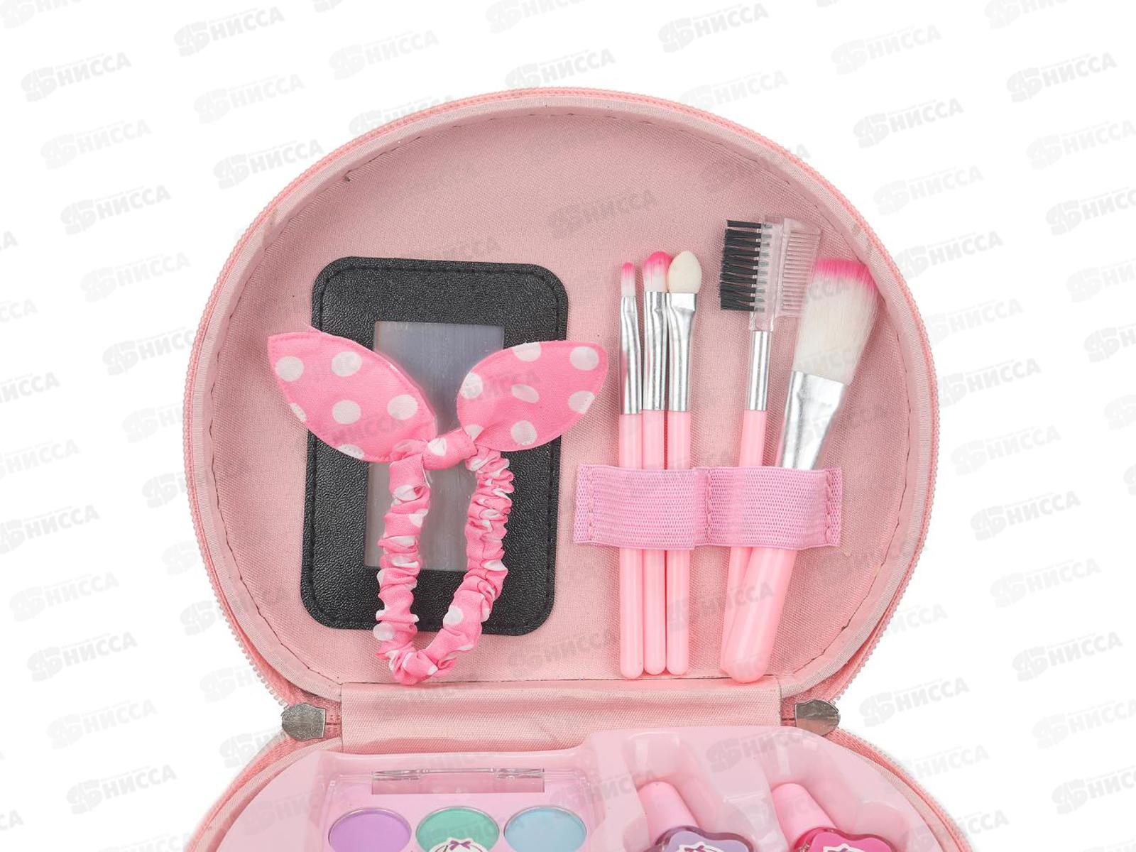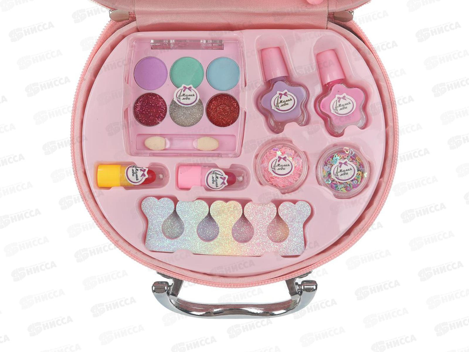 Набор косметики для девочек: палетка с тенями для век 3-х цветов и тенями для век с блёстками 3-х цветов с аппликатором, 2 помады для губ, 2 лака для ногтей, блёстки для ногтей 2 шт, аппликатор и 3 кисточки для нанесения макияжа, расчёска-щёточка для бровей, разделитель для пальцев, пилочка для ногтей, резиночка для волос, зеркальце. Лак снимается одним движением. Безопасно для детей