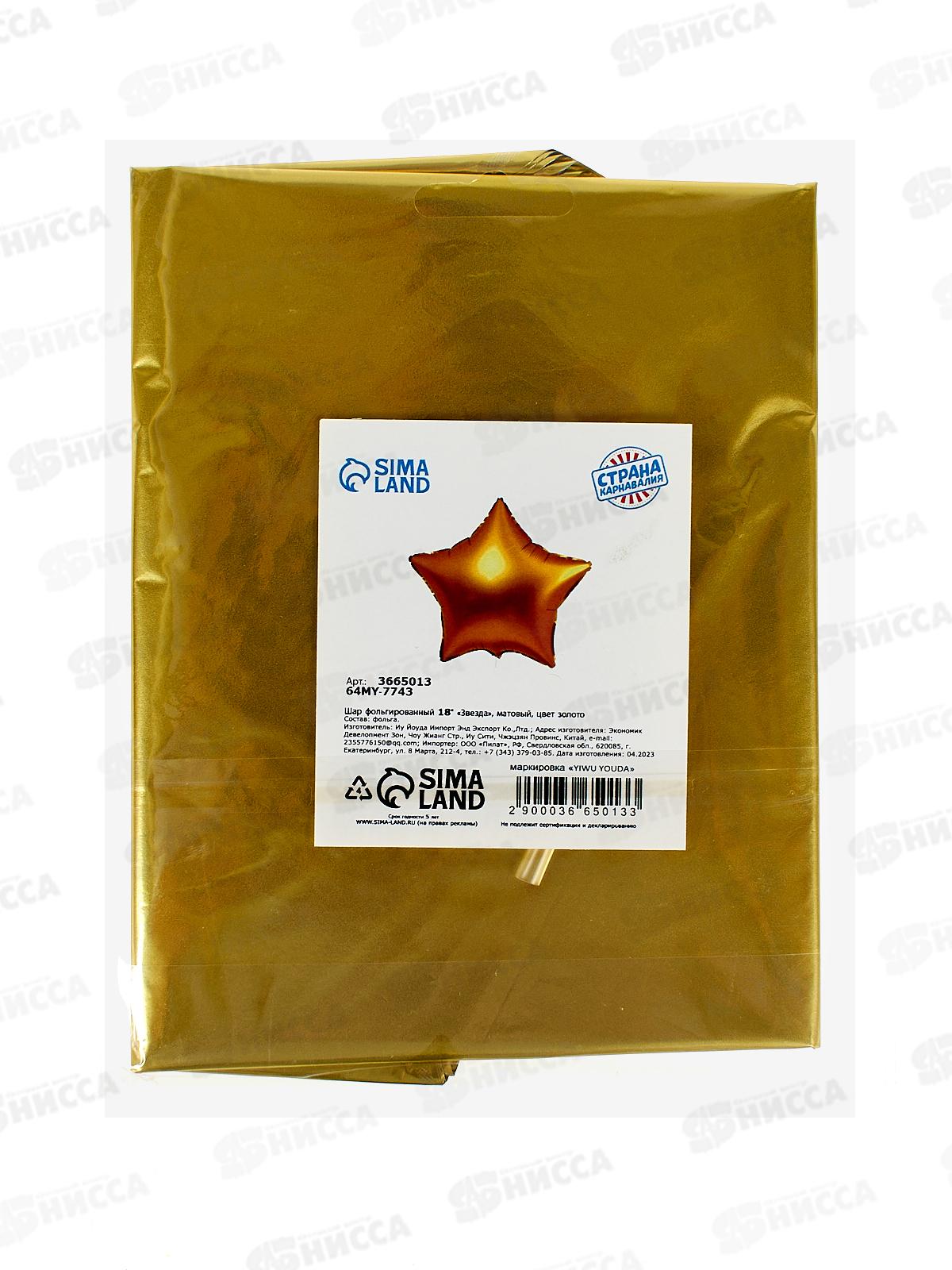 • Шар фольга &quot18 Звезда матовый золото 3665013