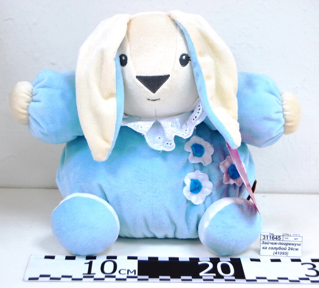 Зайчик-погремушка голубой 24см (41095)