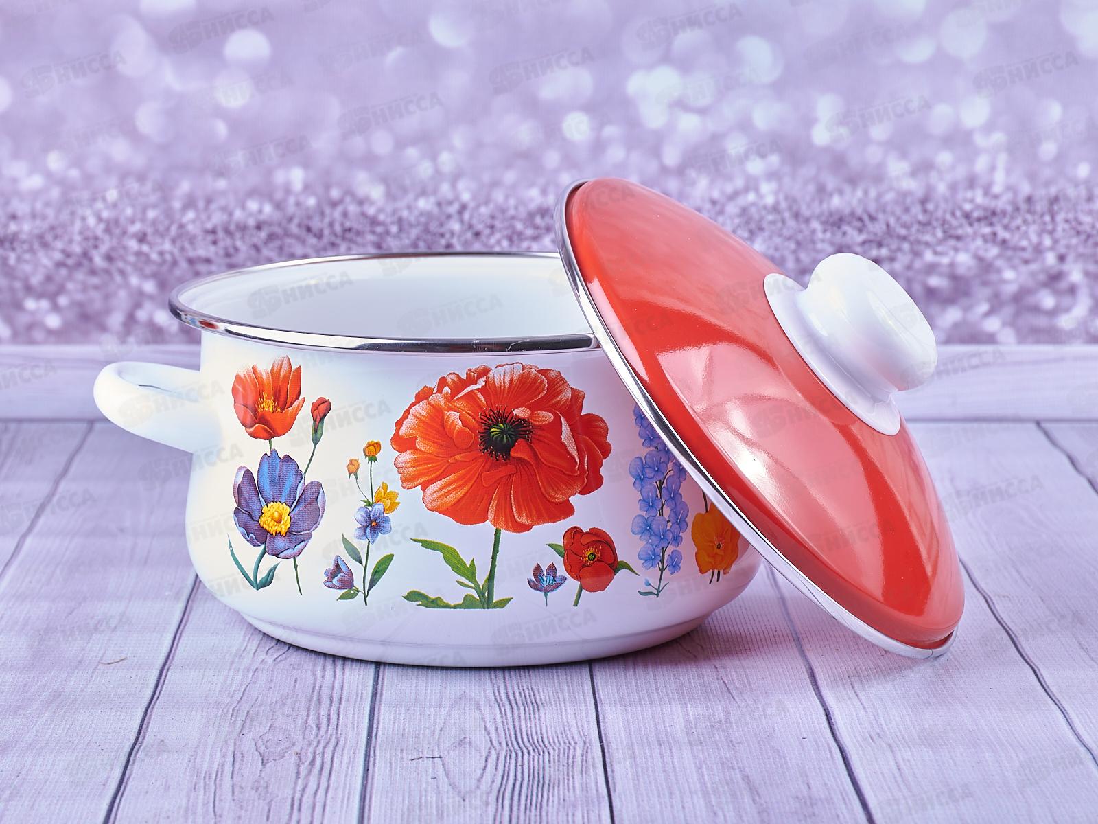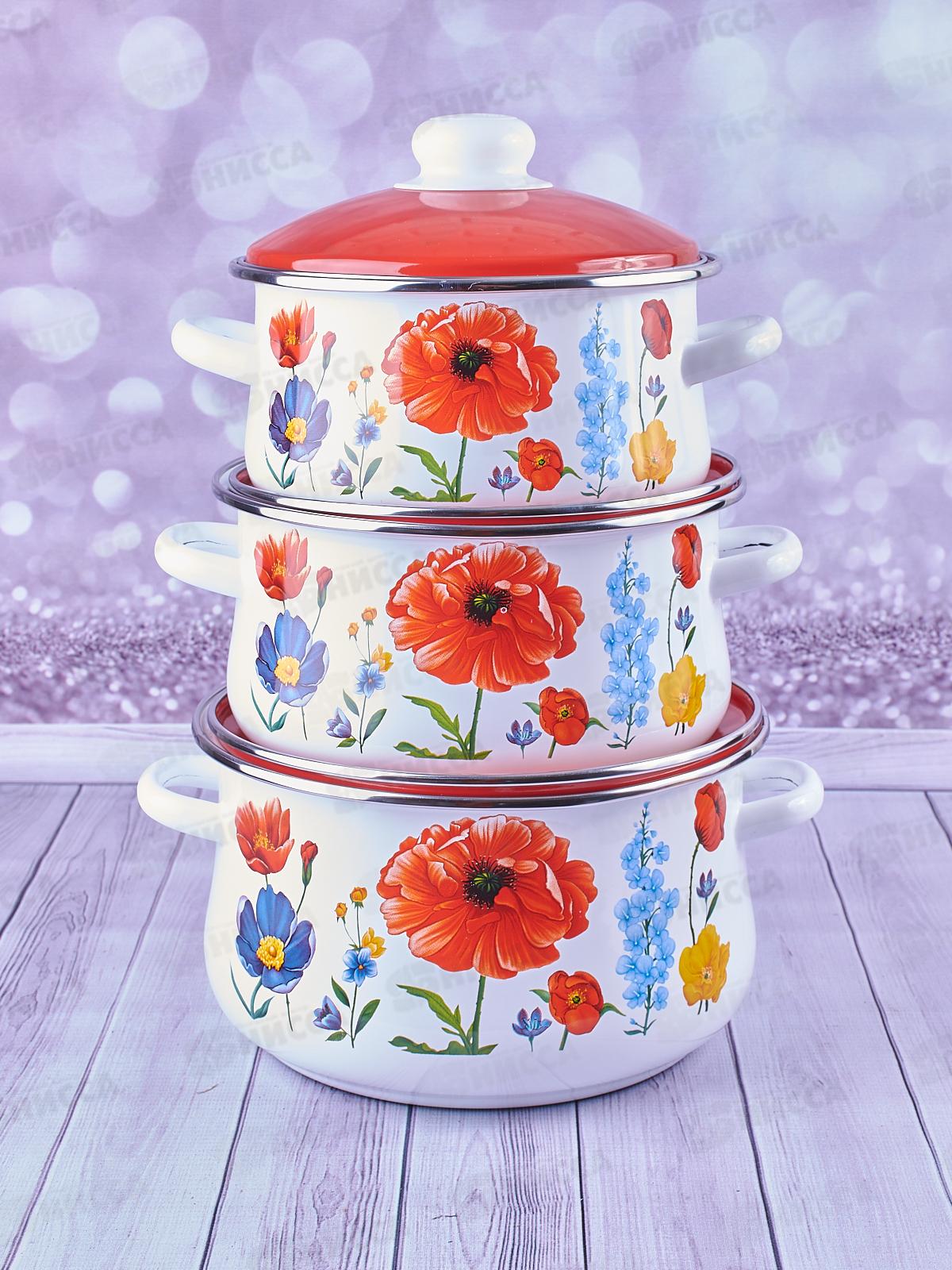 Набор кастрюль Маковый букет белый 7-327/6 (2л, 3л, 4л) *1