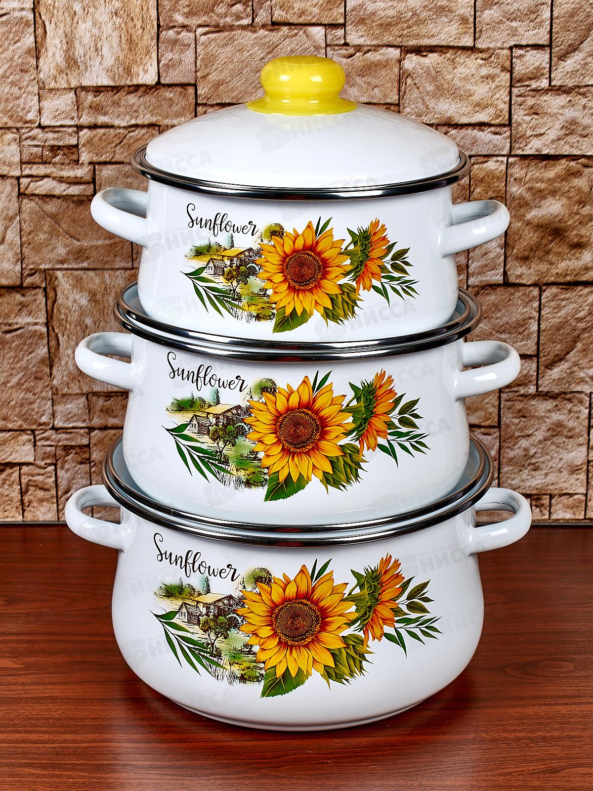 Набор кастрюль Подсолнух белый (2+3+4) 7-329/4