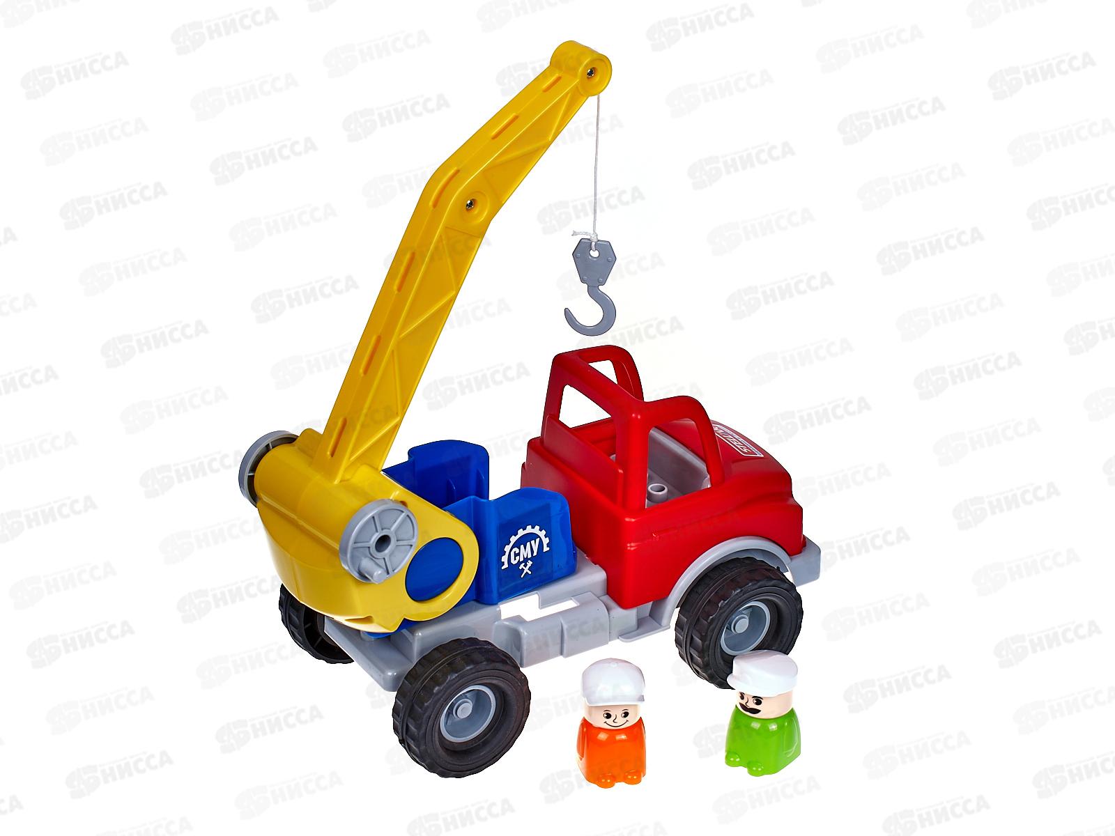 «Автокран» - незаменимая игрушка для маленьких любителей строительной техники, которая надолго займет внимание вашего ребенка. Кабина игрушки оснащена подвижной стрелой, поднимающейся и опускающейся вертикально, по бокам расположены две ручки лебедки, с их помощью малыш сможет ловко сматывать веревку-трос с крюком для подъема и опускания грузов. Платформа «Автокрана» поворачивается на 360 градусов, благодаря чему можно еще быстрее перемещать грузы для «тяжелых» строительных работ. В комплекте идут две фигурки – водителя и крановщика, которые легко садятся на свои места.