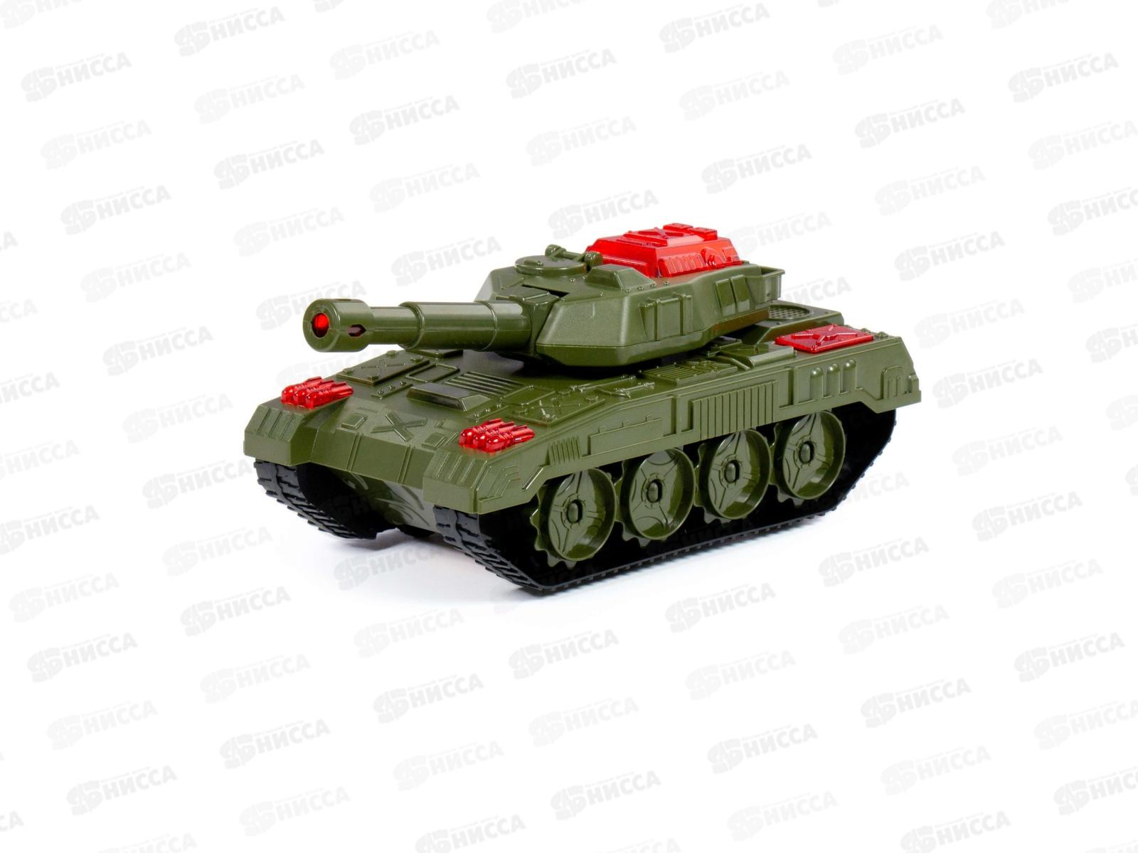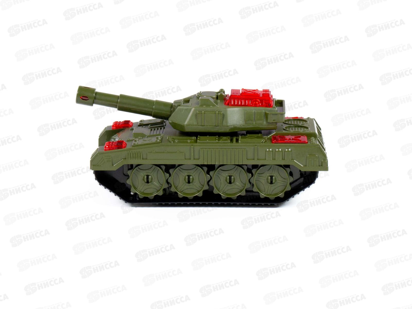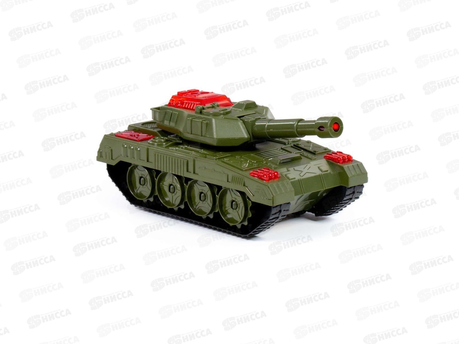 Игрушка выполнена из качественных материалов и повторяет дизайн настоящей боевой машины. На танке имеется имитация гусеничного механизма, игрушка приводится в движение благодаря скрытым колёсикам. Башня с пушкой поворачивается, а дуло пушки можно поднимать и опускать.