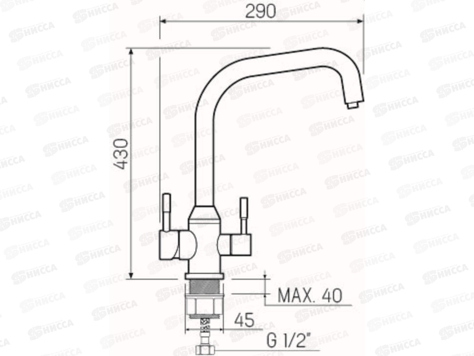 Смеситель для кухни шар., высокий излив, с переключателем для питьевой воды, SUS124-017F-015