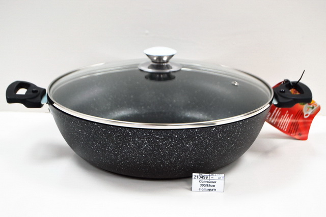 Сотейник 300/85мм антипригарное покрытие, стеклянная крышка, съемные ручки, цвет темный мрамор смт308а *3