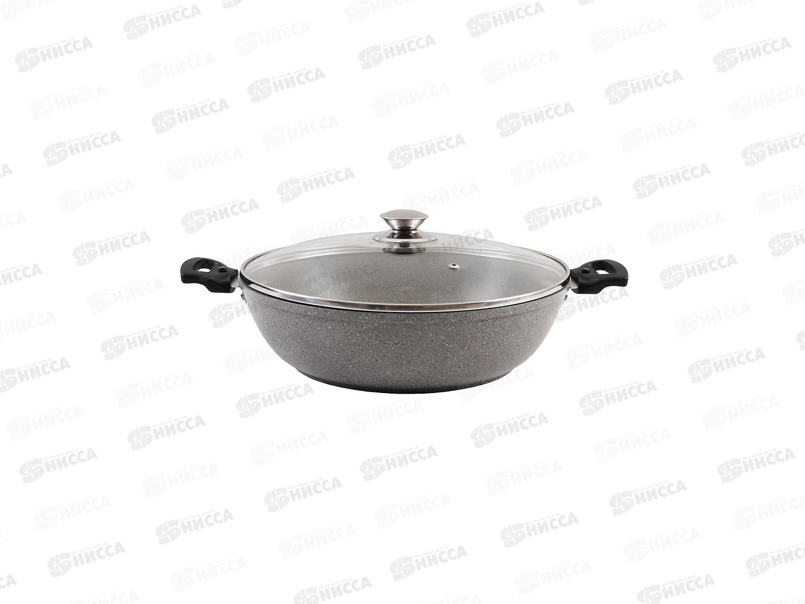 Сотейник 300/85мм антипригарное покрытие, стеклянная крышка, съемные ручки, цвет светлый мрамор смс308а *3
