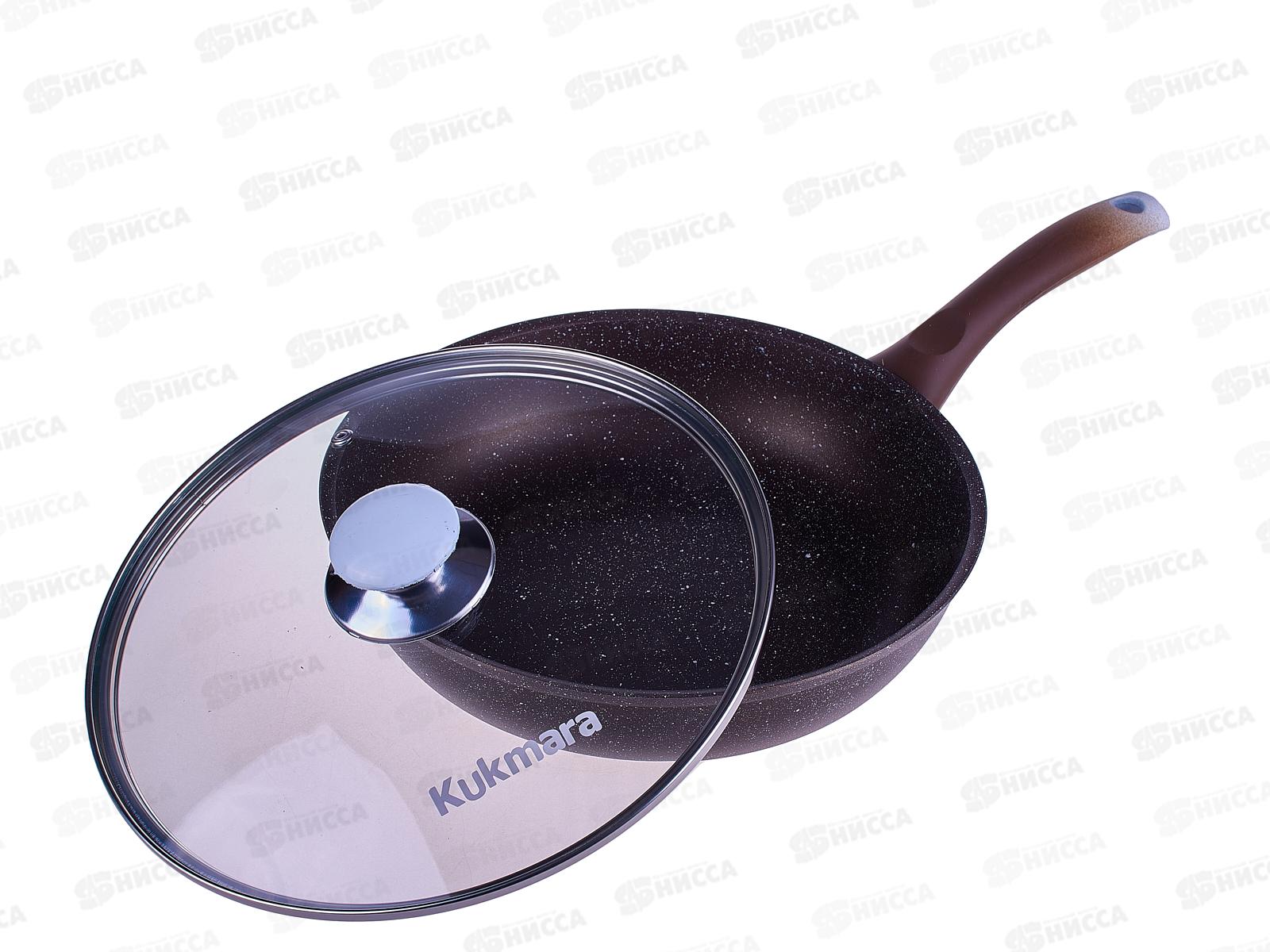 Сковорода 260/60мм с ручкой стеклянная крышка, антипригарное покрытие смк26603а (кофейный мрамор) *5