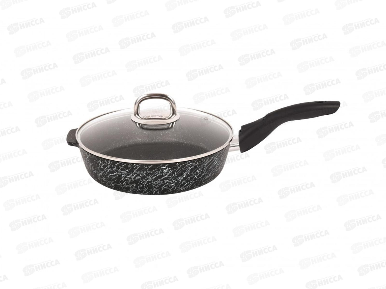 Сковорода 220мм Грация со съемной руч со стеклянной крышкой,цвет черный сер ебро сгчс222а