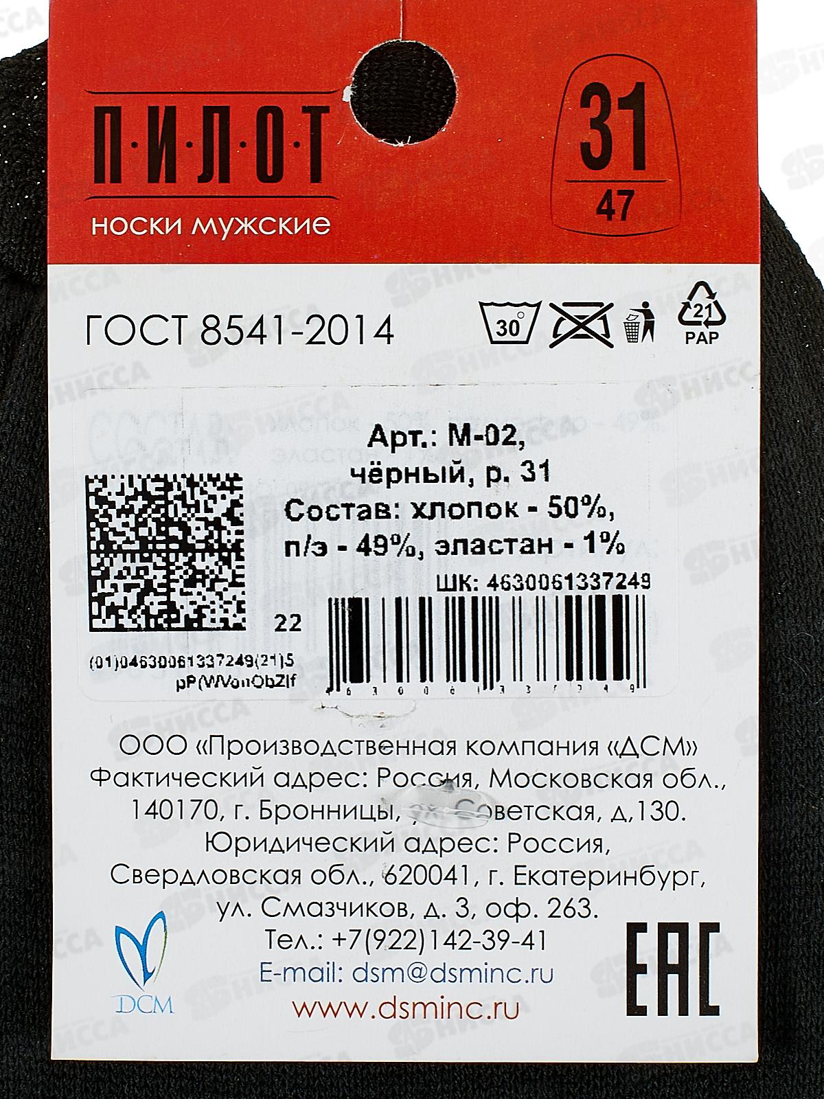 Носки муж М-02 ПИЛОТ черный р-31