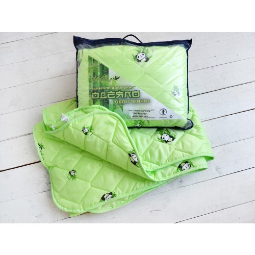 Облегченное одеяло из экологически чистого бамбукового волокна обладает целым рядом конкурентных преимуществ. Комфорт и удобство использования. Одеяла с натуральным наполнителем очень легкое и мягкое. Они отлично сохраняют тепло и при этом защищают от перегрева и не позволяют развиваться парниковому эффекту. Великолепные терморегулирующие свойства изделия обеспечиваются за счет пор наполнителя, через которые воздух свободно циркулирует. Гигиеничность и антибактериальность. Бамбуковые волокна не впитывают посторонние запахи и предотвращают поглощение влаги. Кроме того, натуральные компоненты наполнителя предотвращают возможное появление и размножение пылевых клещей и плесени, которые могут нанести вред здоровью человека. Польза для здоровья. Научно доказано, что бамбук способен выделять в воздух эфирные масла и аминокислоты, которые способны нормализовать сон и благотворно воздействовать на нервную систему человека. Также эти природные вещества улучшают сердцебиение и препятствуют образованию тромбов в кровеносных сосудах; Практичность и долговечность. Одеяло "Бамбук" можно стирать в машине – автомат с использованием обычного порошка. При правильном уходе текстиль из этого материала способен прослужить без вреда для внешнего вида и физических качеств на протяжении длительного времени.