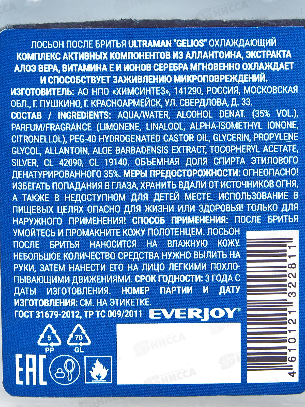 Ultraman GELIOS, лосьон после бритья 100мл без футляра *12