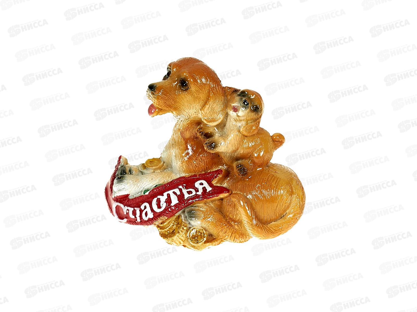 Сувенир СОБАКА СО ЩЕНКОМ ПОДКОВА НА МОНЕТЕ 6,5см 17264(046764) *1/4 Ж