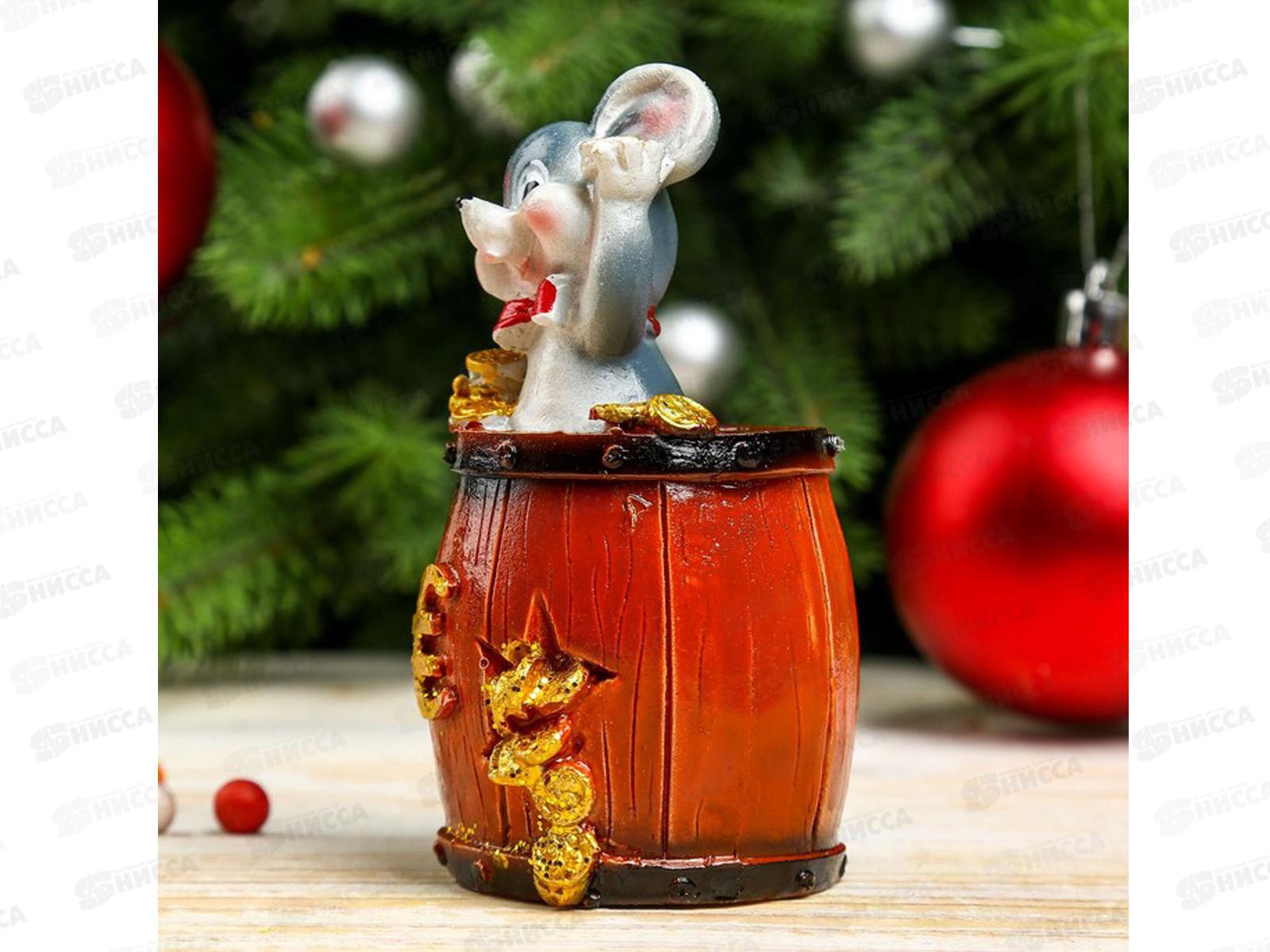 Сувенир "Мышь в бочке с монетами"14*7см микс 4285357