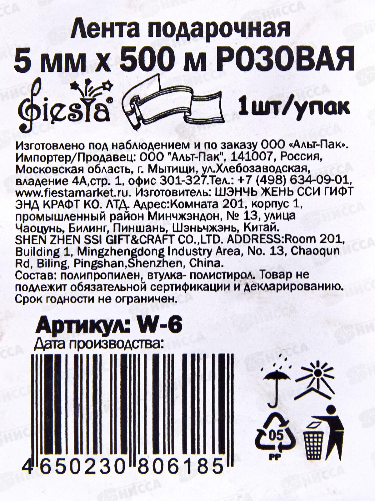 Лента подарочная Fiesta 5мм/500м розовая W-6 *1