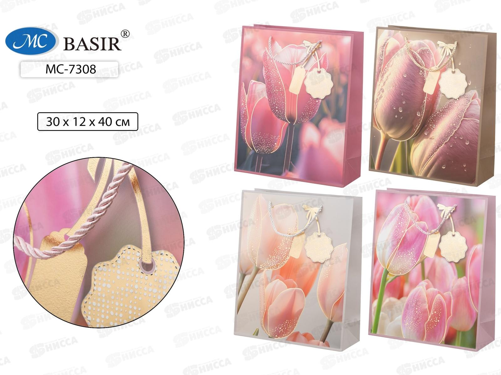 Пакет подароч. бумажный, 30*12*40см, ТЮЛЬПАНЫ, асс.МС-7308 *20