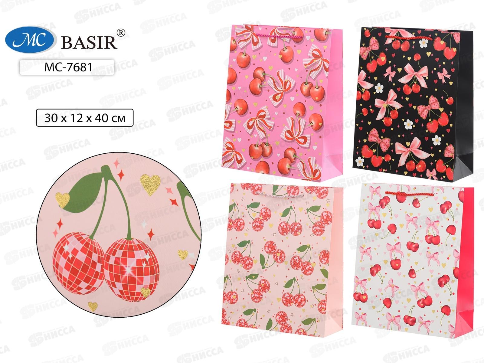 Пакет подароч. бумажный, 30*12*40см, ВИШНЯ, асс. МС-7681 *20