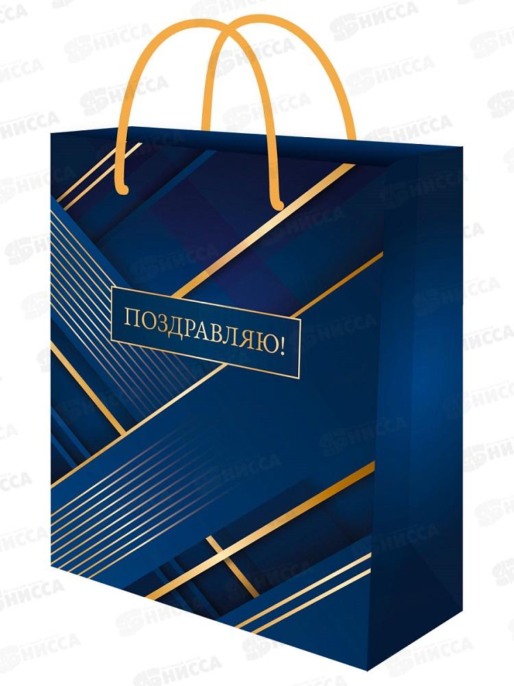 Пакет подарочный MI 26,4х32,7х8см (L) Геометрия на синем ППК-7862 *12