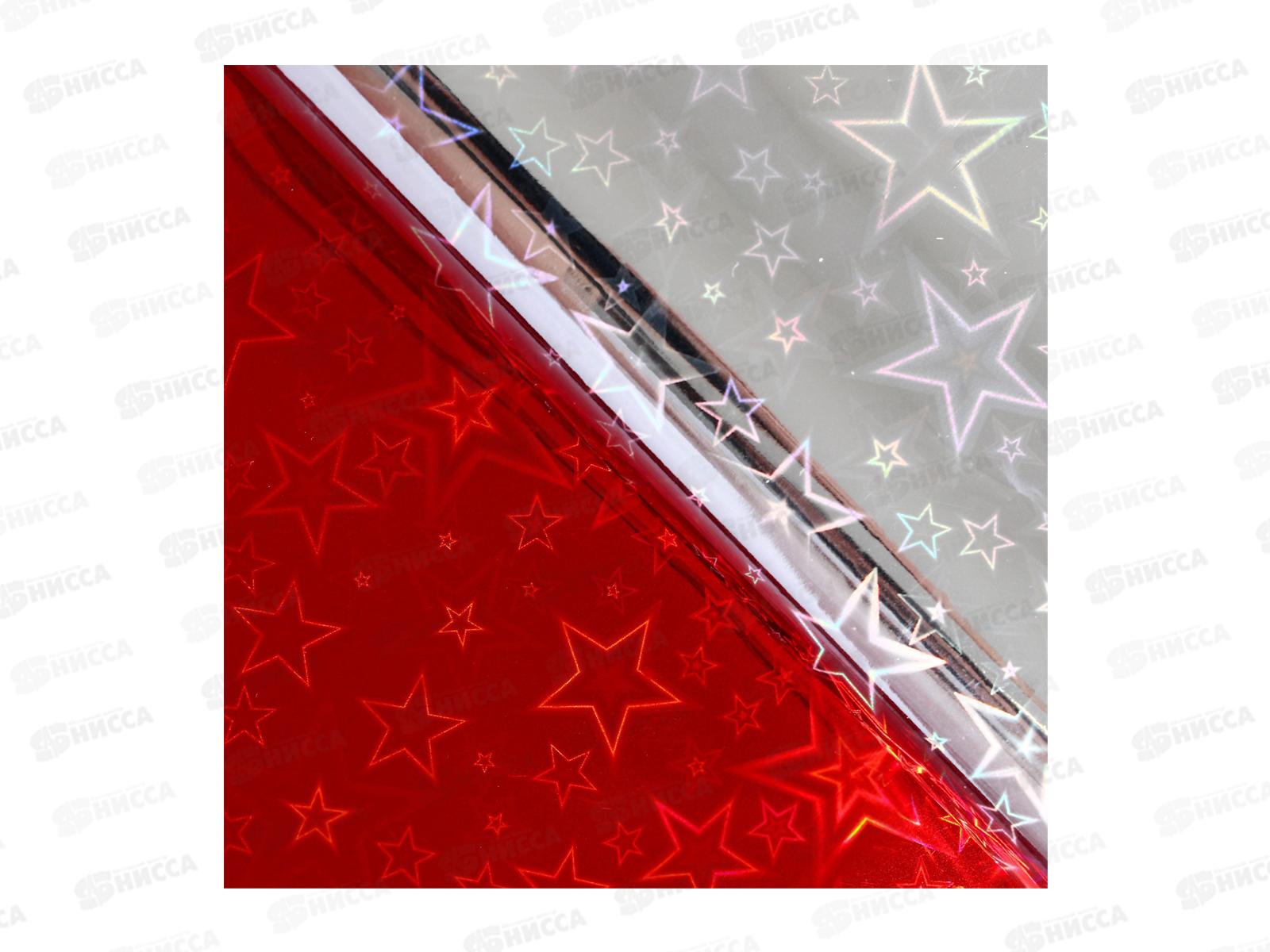 Бумага голограф. рисунок звезды красн, 70см*1м 128607