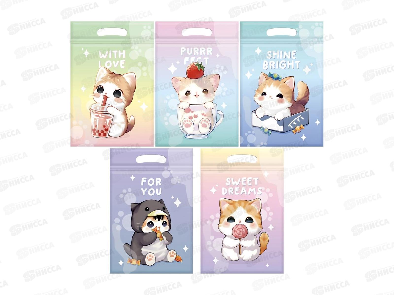 Пакет подар. набор 15*22см зип-лок, MESHU "Cute kitten", 35шт 66871