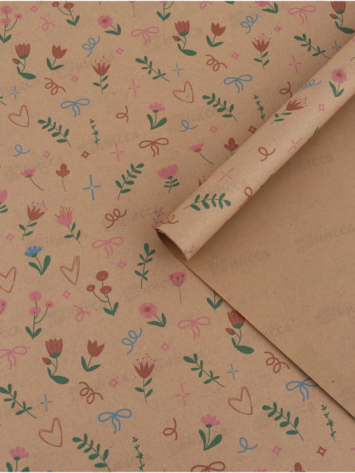 Бумага упаковочная крафт "Векторные цветы", 50*70см *10 10935932