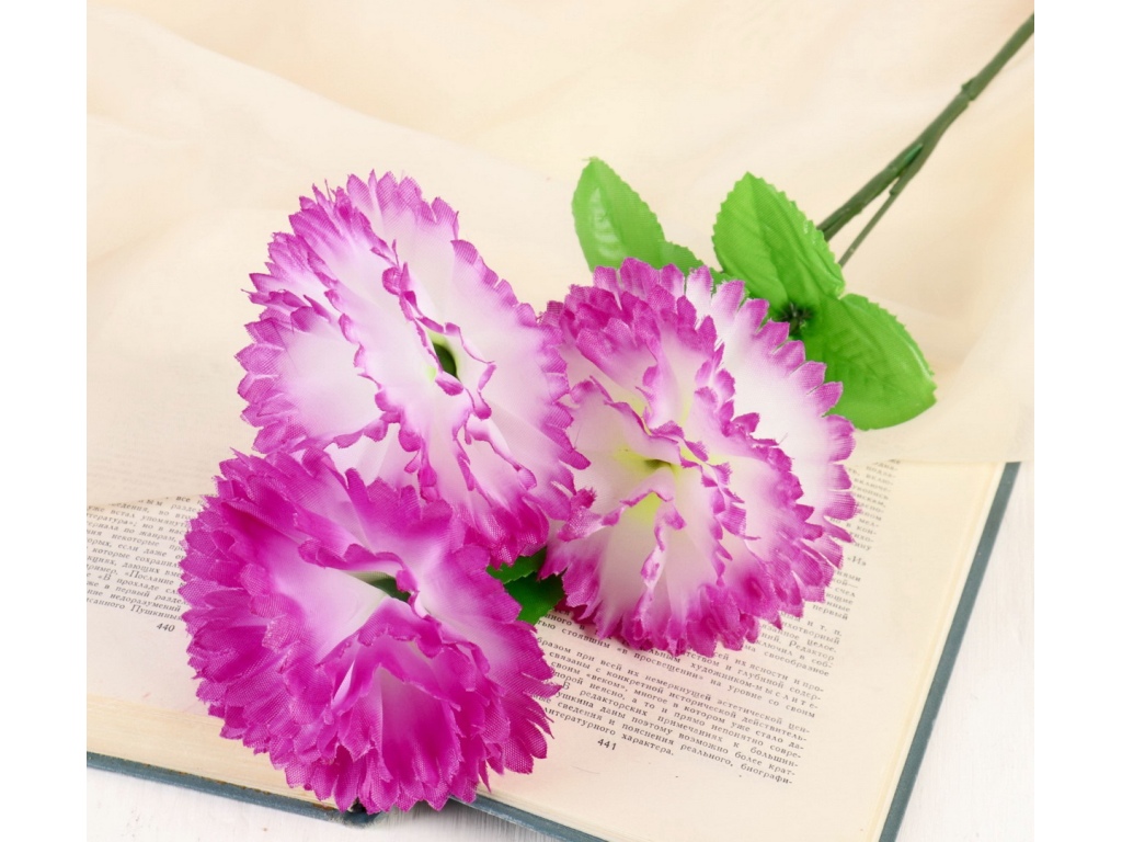 Цветы искусственные 58см Гвоздика трио бело-сиреневый 4560207 *10