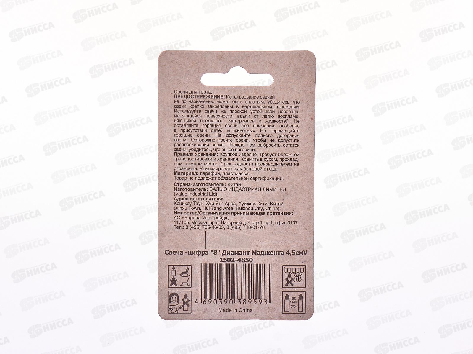 Свеча - цифра "8" Диамант Манжента 4,5смV, 1502-4850