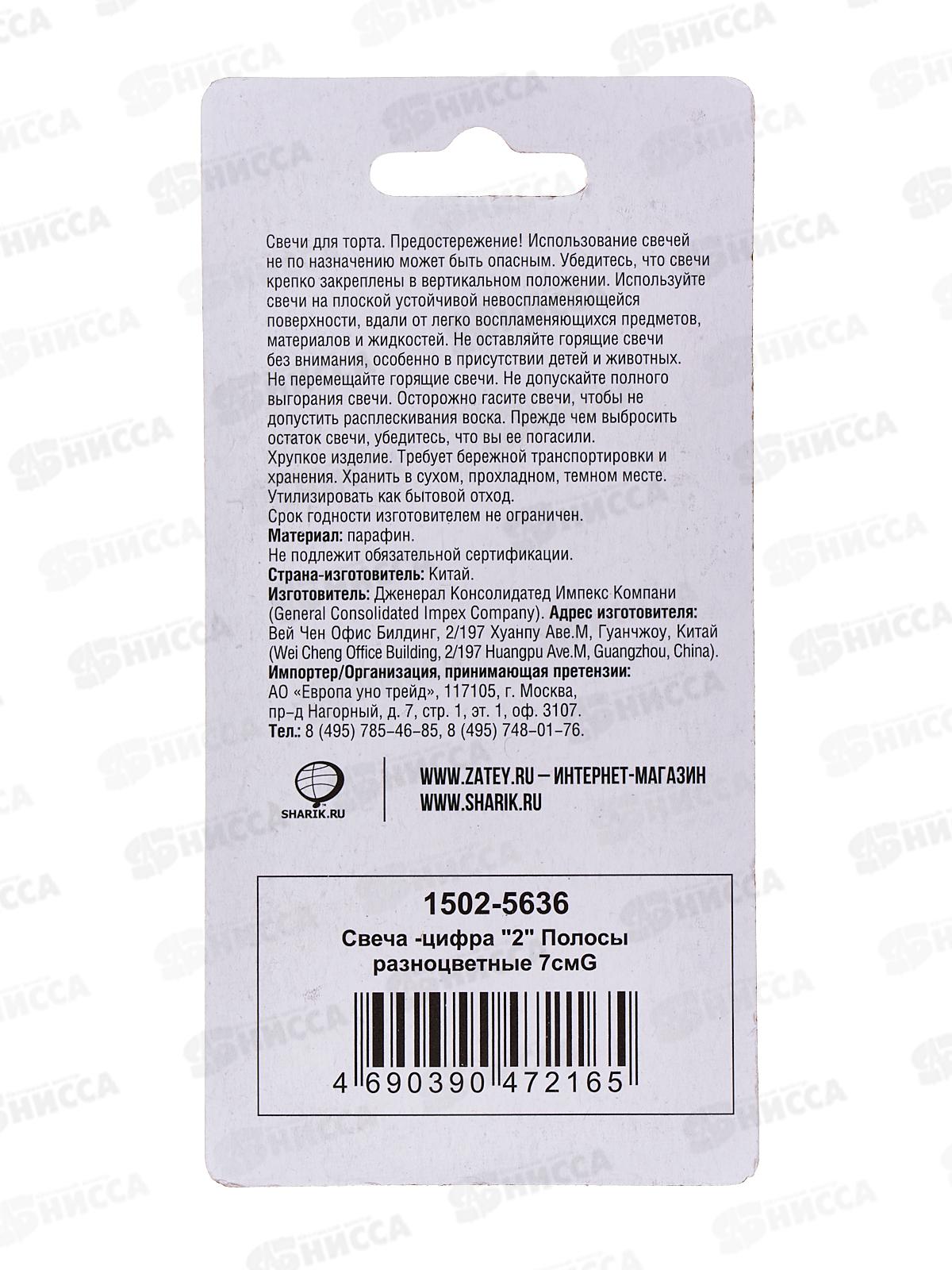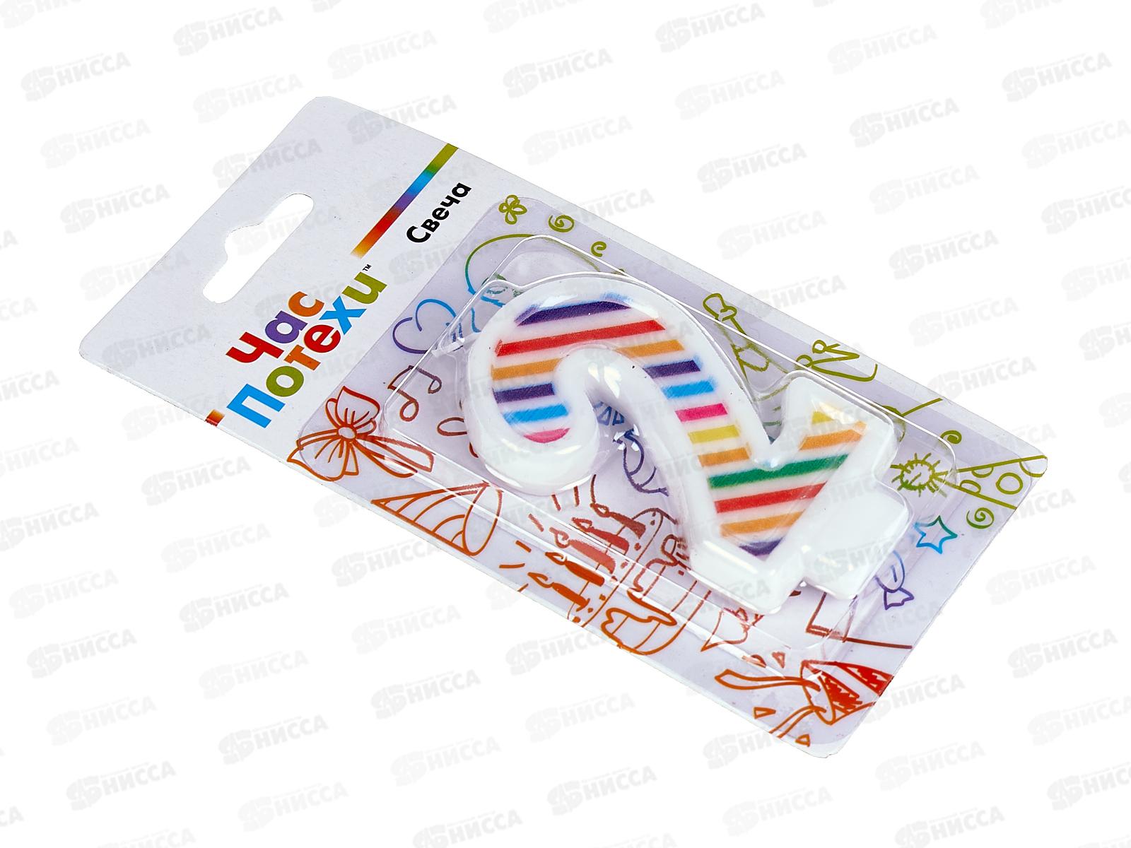 Свеча - цифра "2" Полосы разноцветные 7см G, 1502-5636