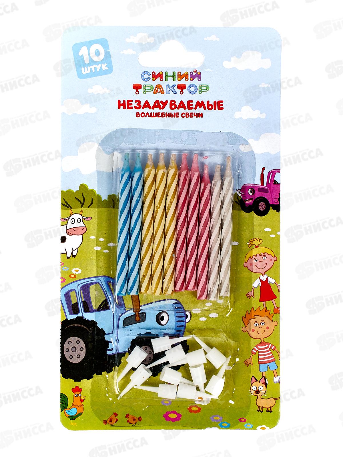 Свечи для торта незадуваемые, 10шт Синий трактор, СС-76785-ВТ блистер