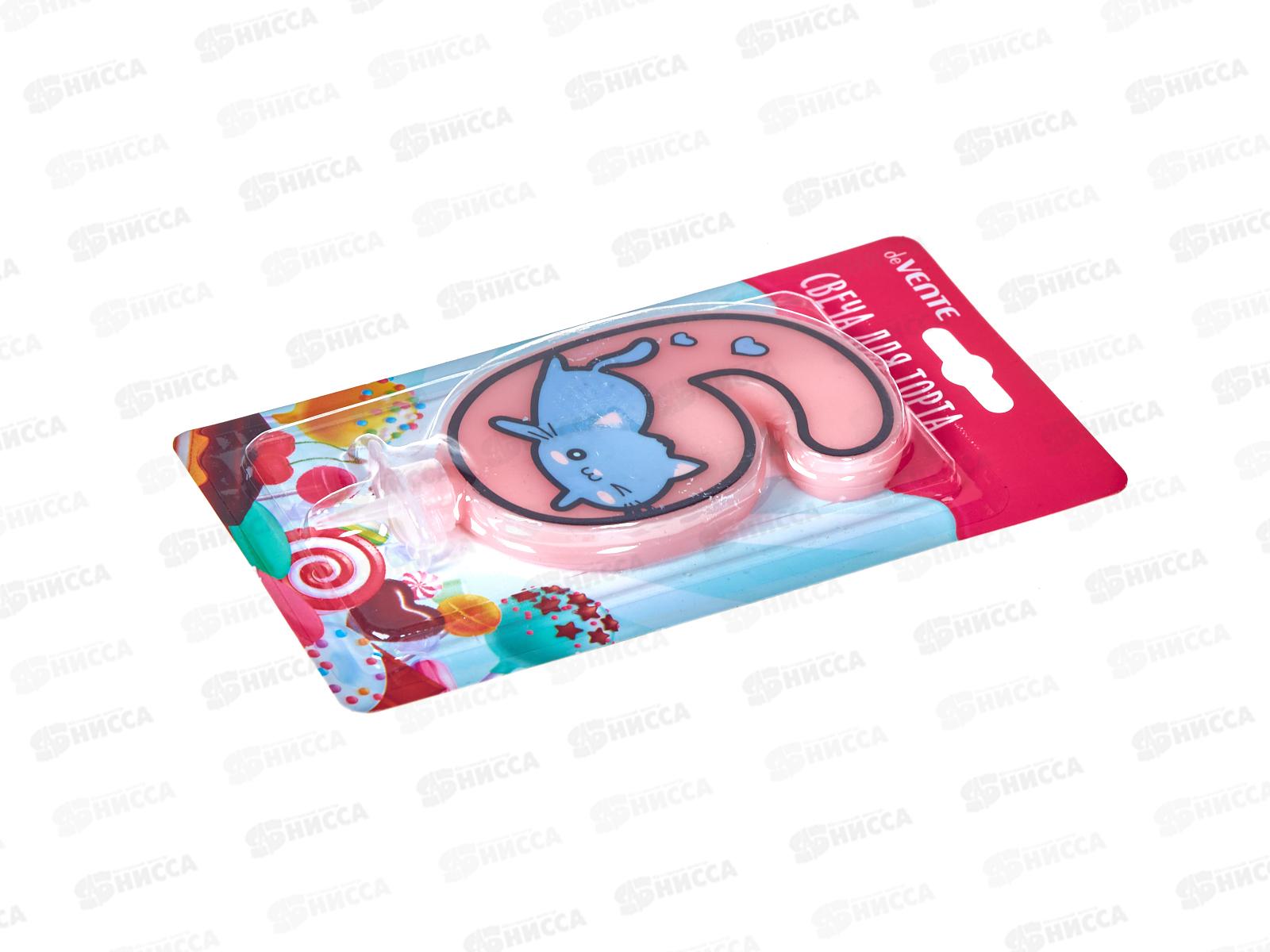 Свеча-цифра д/торта deVENTE "Котик 6" Розовая с рисунком 9060127 *12