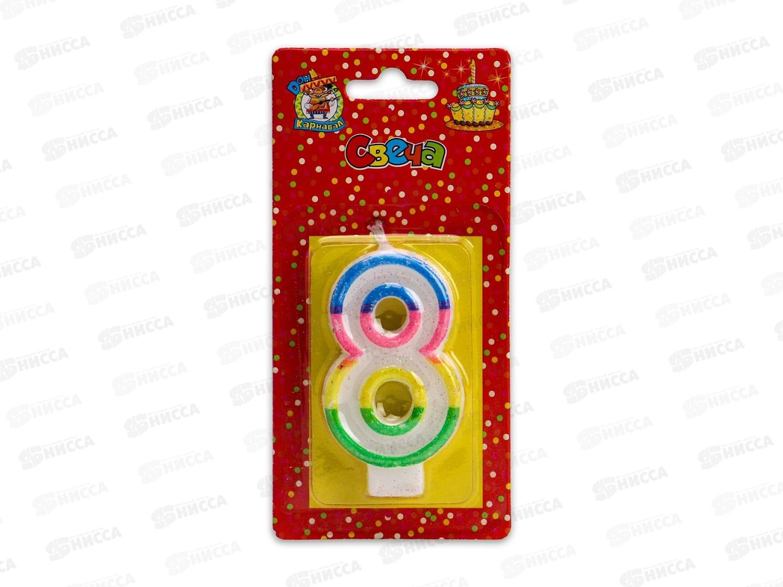 Свеча для торта с окантовкой с блестками Цифра 8, С-2423