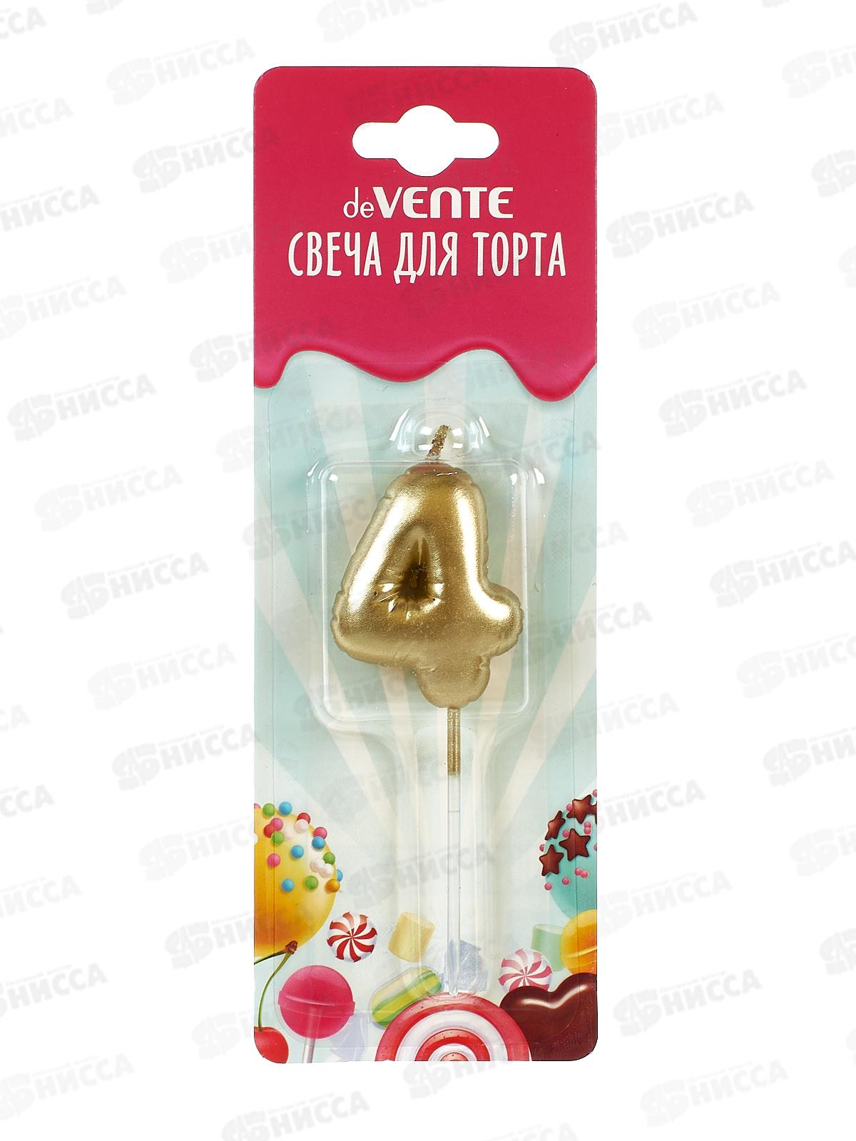 Свеча-цифра д/торта deVENTE "Воздушный шарик 4" золотистый 9060007 *12