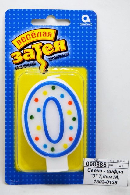 Свеча - цифра "0" 7,6см /А, 1502-0135