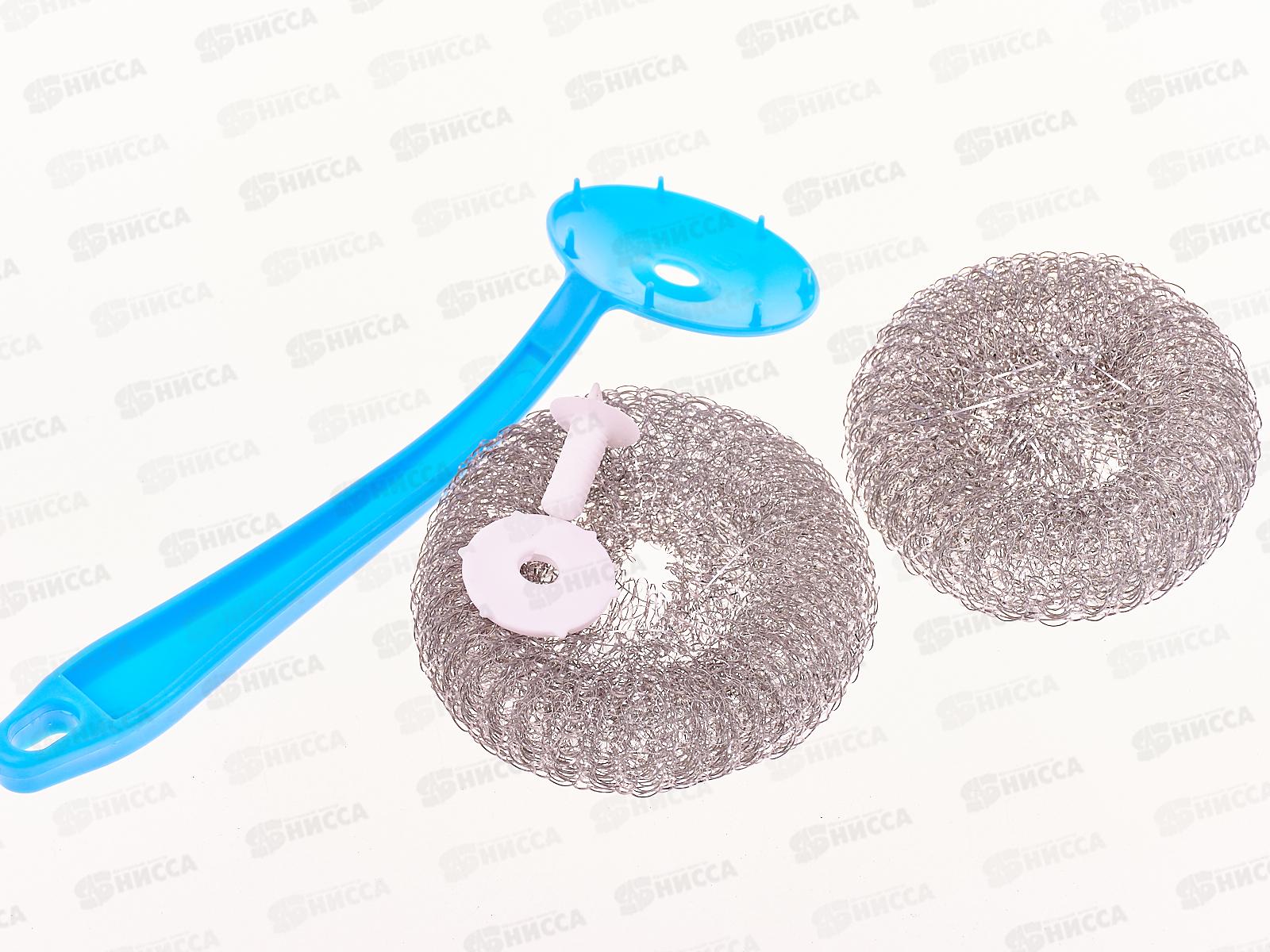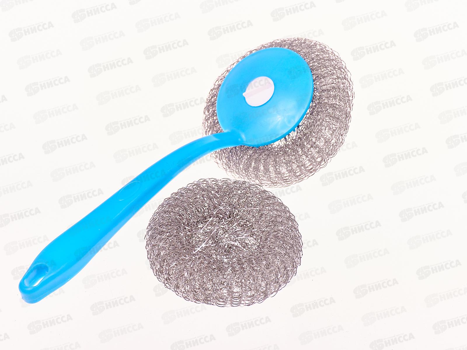 Губка для посуды металлическая, с пластиковой ручкой + запасной блок, AL-132 *300