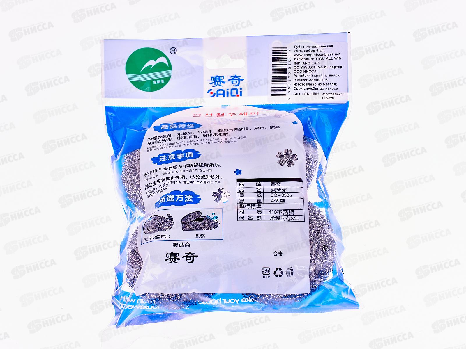 Губка для посуды, металлическая 25гр, набор 4 губки, AL-4591 *300
